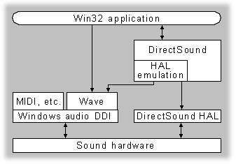 Следующая иллюстрация показывает, как DirectSound "уживается"